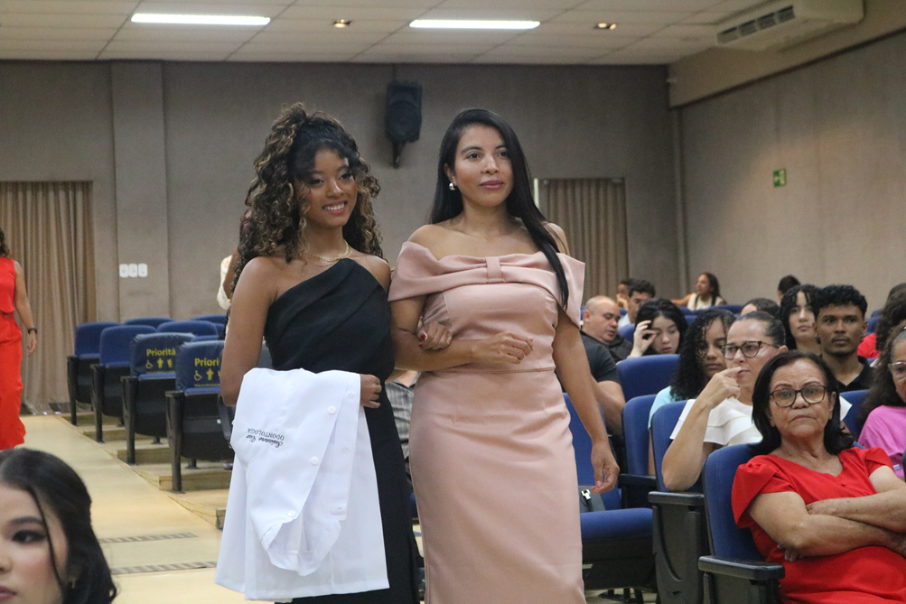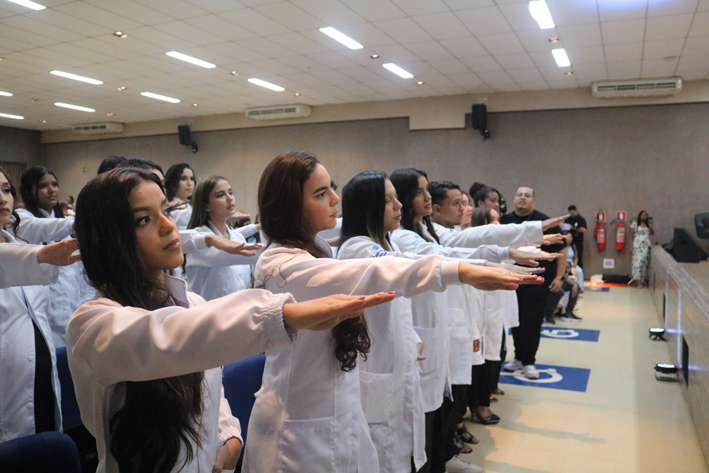 A solenidade representa o início da vivência prática dos estudantes, destacando o jaleco não apenas como um Equipamento de Proteção Individual (EPI), mas como um símbolo de responsabilidade, ética e compromisso com a vida. Durante o evento, os acadêmicos foram apadrinhados por familiares e convidados, reforçando o apoio e a importância desse momento na trajetória universitária.