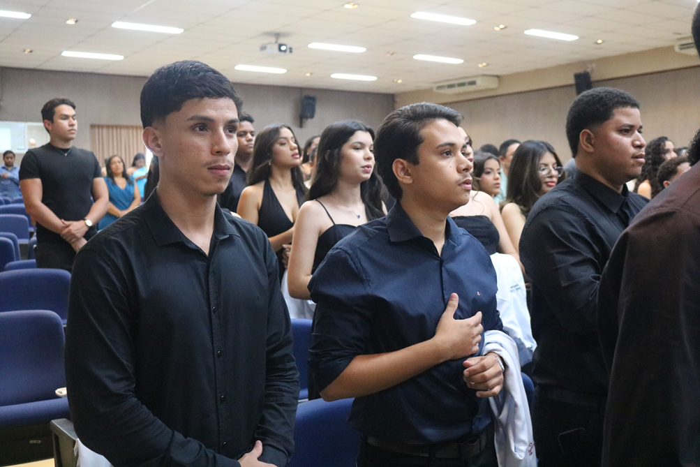 Um dos pontos mais marcantes da cerimônia foi o juramento, proferido pelo acadêmico Gustavo William Ximendes e Silva, que, em nome da turma, reafirmou o compromisso com os princípios da honestidade, da ciência e da ética no exercício da Odontologia.