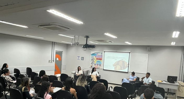 A programação foi conduzida pela Prof. Esp. Brenda Brito Ramos, docente do curso de Psicologia, juntamente com as psicólogas Tanandra Roberta dos Santos Almeida e Ana Caroline do Carmo Nascimento. Durante a palestra, foram discutidas as atribuições, práticas e desafios enfrentados pelos profissionais nesses contextos institucionais, contribuindo para a ampliação da compreensão dos estudantes acerca da atuação profissional para além do modelo clínico tradicional.