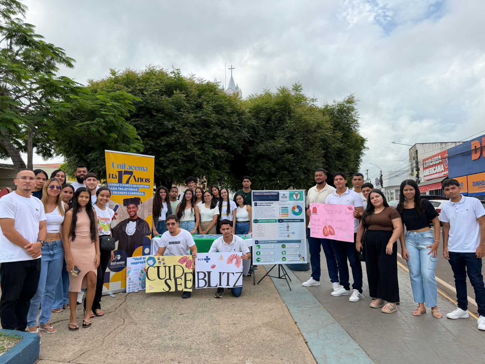 O Centro Universitário de Ciências e Tecnologia do Maranhão – UniFacema, Campus Presidente Dutra, realizou no dia 14 de março a ação extensionista “Blitz da Saúde: Conscientização e Prevenção das Doenças Respiratórias”, promovida pelo curso de Bacharelado em Fisioterapia. A atividade aconteceu na Praça São Sebastião, das 8h às 12h, e contou com a participação de acadêmicos do 1º período do curso, que desenvolveram ações educativas voltadas à orientação da comunidade sobre cuidados com a saúde respiratória.