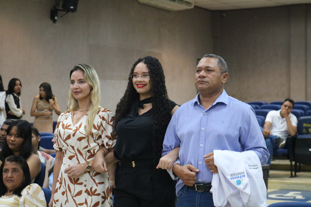 A cerimônia contou com a presença da coordenadora do curso de Enfermagem, Profª. MSc. Márcia Sousa Santos, da professora homenageada pelos alunos do 1º e 2º período, Profª. Esp. Camilla Lohanny Azevedo Viana, que integram o dispositivo de honra da solenidade. Durante o evento, acadêmicos foram oficialmente paramentados com o jaleco por padrinhos e madrinhas, simbolizando o ingresso na jornada de formação na área da saúde.